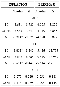 En este apartado estimamos la curva de Phillips acorde con nuestro enfoque teórico y aporta resultados concluyentes sobre el manejo de la política monetaria.
