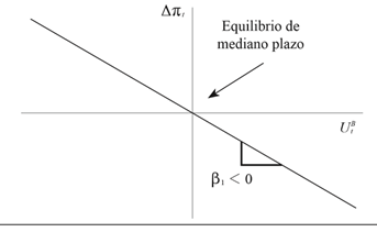 El parámetro β1 refleja la magnitud de la relación entre el cambio en la aceleración de la inflación respecto de la brecha de desempleo y solo cuando esta variable es 0 la economía estará en su equilibrio de mediano plazo.13 El Banco Central definirá la política más eficiente para alcanzar ese objetivo.