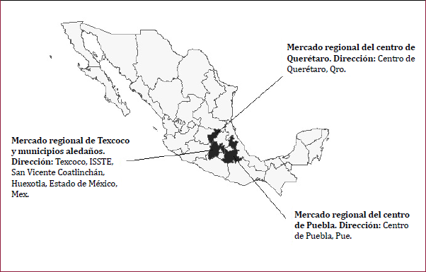 Figure 2 illustrates the locations of the markets wherepotentionalrespondentswereapproached. Respondents in markets located in Texcoco, Estado de Mexico, are near to Tianguis Organico de Chapingo (Chapingo’s Organic Market); respondents in markets located in Puebla are near to Tianguis Alternativo de Puebla (Puebla’s Alternative Market); and respondents in markets located in Queretaro are near to Tianguis Buen Vivir (Good Living Market).