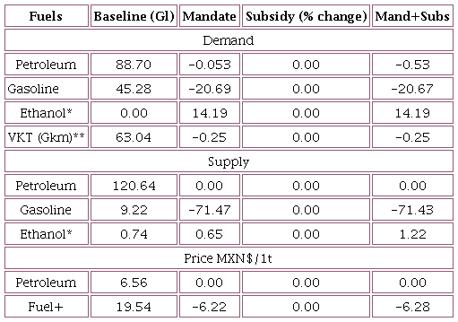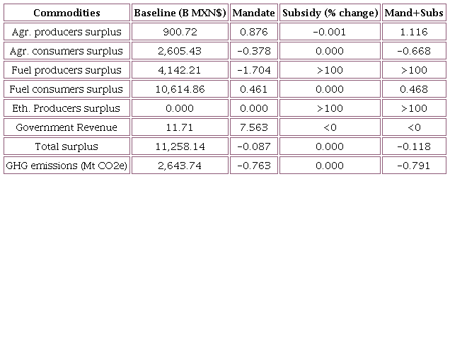 Conclusions: This research suggests that it is possible to develop a bioethanol market in Mexico, but some compensating redistribution among economic groups may be needed if these policies are to be seen as politically sustainable.