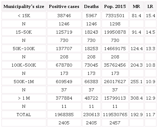 Limitations: These conclusions should be considered as preliminary because we did not have precise information about the deceased’s surroundings. In addition, many of the poorest municipalities did not have information on either contagions nor deceases, which may add some bias to the estimates.