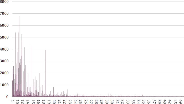 The graph also shows that the bulk of deaths falls within middle-sized municipalities.