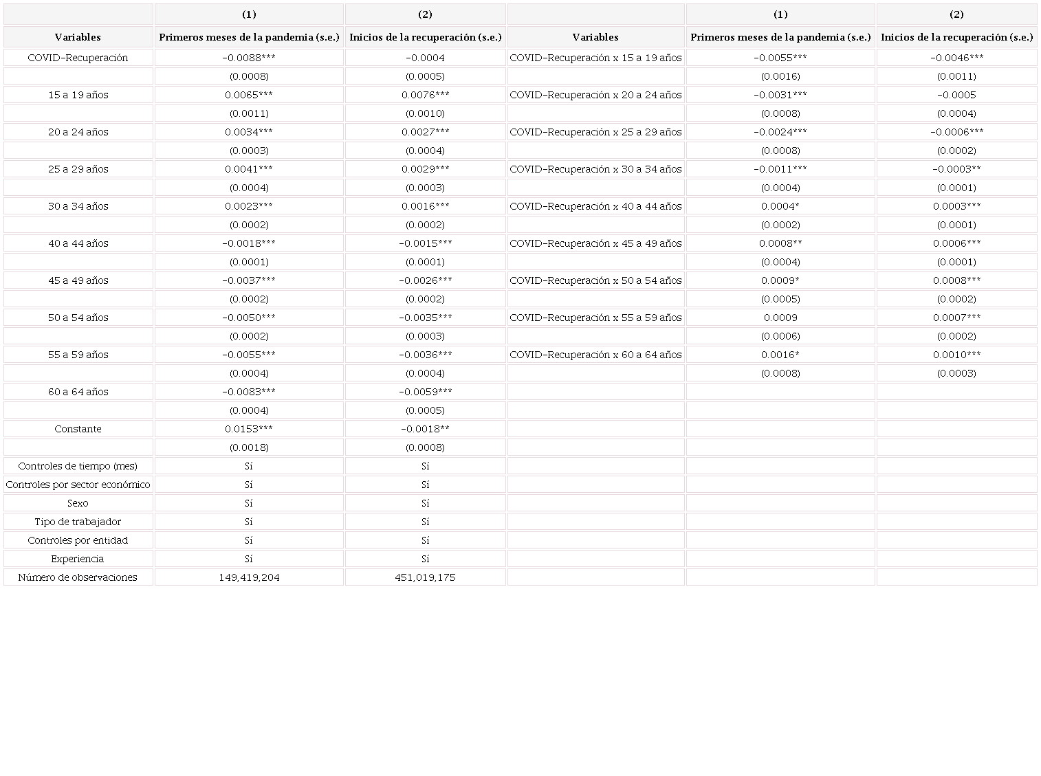 En forma análoga a la Ecuación 2, para estimar los efectos diferenciados por grupo de edad durante el periodo de inicios de la recuperación se utilizó el siguiente modelo: