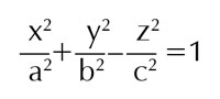 La descripción anterior nos da la pauta para interpretar cuáles son los elementos necesarios para generar bidimensionalmente un hiperboloide (figura 5). Entendidos los fundamentos básicos de este concepto descriptivo podemos aplicar su matemática, lo cual se logra si el centro de simetría es C (0, 0, 0), y el eje del hiperboloide es el eje z, entonces la ecuación del hiperboloide de una hoja es: