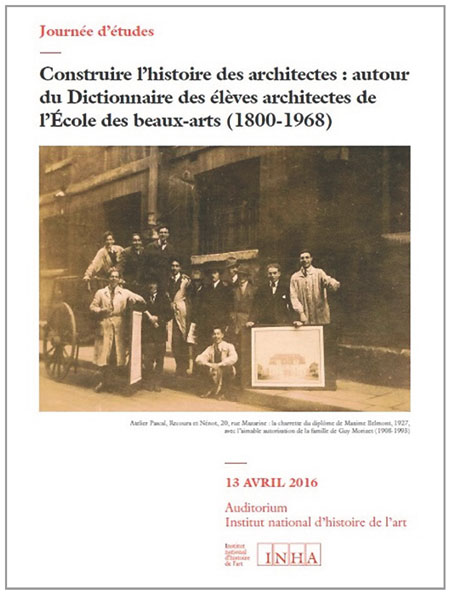 INHA (2016). Dictionnaire des élèves architectes de l'École des Beaux-Arts (1800-1968). [Anuncio del evento académico]. Recuperado de http://agorha.inha.fr/inhaprod/jsp/reference.jsp?reference=INHAMETADONNEES__7