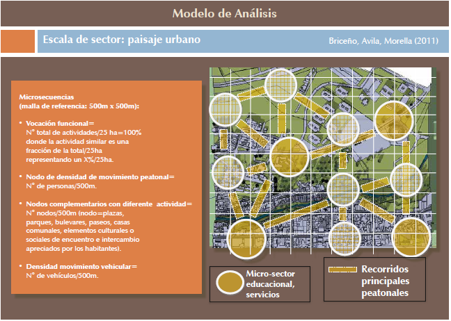 Para hacer operativo el enfoque, las secuencias y unidades constituyen conceptos clave para el tratamiento estructurado del paisaje desde su espacio público. Cada unidad, determinada a la luz del estudio de los atributos, facilita el proceso de análisis y diseño. La secuencia aporta a un fin mayor, logrando la interconexión de los espacios urbanos y mejorando su expresión estética, consecuentemente, su calidad (Matsuoka y Kaplan, 2008; Lynch, 1992; Cullen, 1974; Rapoport, 1974).