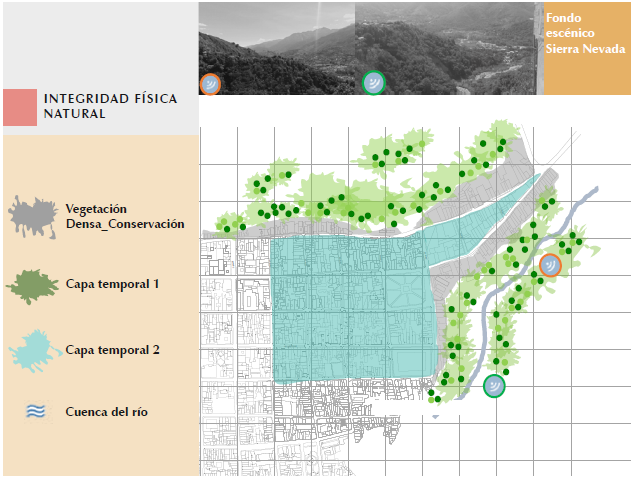 El atributo de integridad física evidencia el grado de conservación natural observado en la historia de las capas temporales y el mantenimiento y conservación de elementos singulares. En la figura 6 se observan las capas temporales, siendo 1 la más antigua y 2 la más reciente. Destaca del análisis la baja accesibilidad visual o funcional a estos espacios naturales y a los fondos escénicos.