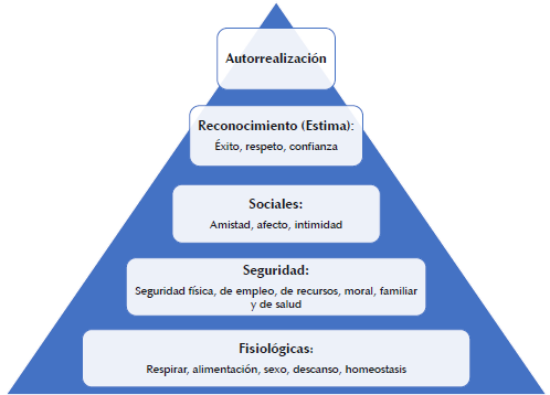 Las variables para la categorización del análisis simbólico surgen de la pirámide de Maslow (Maslow, 2009). La pirámide de Maslow es una representación gráfica de la teoría de motivación propuesta por Abraham Maslow que pretende explicar las necesidades humanas (Figura 1). En la base de la pirámide aparecen las necesidades fisiológicas, seguida de la necesidad de seguridad, necesidades sociales, de reconocimiento y autorrealización.
