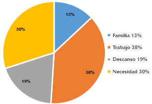 La connotación que se asocia a la casa, es una muestra clara de lo que en ella acontece. Contrariamente a lo esperado fue más asociada al trabajo que al descanso: un 38% contra un 19 % respectivamente. El otro concepto dominante fue el de necesidad, por lo que la casa más que considerarse como u refugio, un lugar que cumpla con sus expectativas, se convierte en una manera de cubrir medianamente una necesidad. Ello se reafirma al momento en que, en una entrevista una persona dijo que lo importante era “tener un techo” (Figura 13).