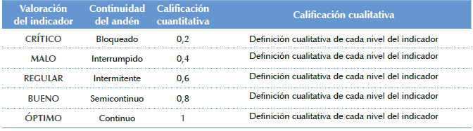 Los indicadores de susceptibilidad, se analizaron y evaluaron desde cada uno de los subsistemas propuestos para determinar la calidad del entorno construido y natural, dando como resultado un modelo sistémico, que garantiza la ponderación o evaluación desde cada una de las variables e indicadores de los subsistemas. En la tabla 1, se observa cómo se valora cada indicador, es importante resaltar que todos los indicadores se evalúan en 5 rangos: critico, malo, regular, bueno y óptimo (López V. & López B, 2015). Así mismo, los valores de calificación cuantitativa serán aplicados a todos los rangos de manera similar.