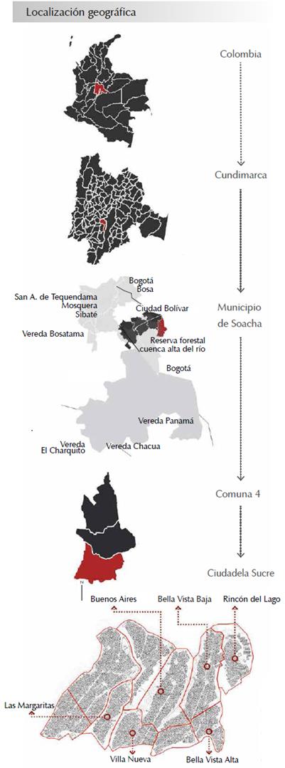 Esta investigación se desarrolla en el marco del semillero: Análisis de envolventes eficientes, financiado y avalado por la Universidad Católi ca de Colombia; en este se aborda el análisis y la evaluación de materiales envolventes en pro totipos habitables, y su comportamiento fren te a las condiciones del clima. El desarrollo de estas actividades permitió contemplar aspectos bioclimáticos en el diseño del proyecto de gra do1 de uno de los integrantes. Lo anterior, con el fin de identificar la correcta selección material de la envolvente en términos de bienestar térmi co y lumínico frente a las condiciones climáticas presentes y futuras en el barrio Bella Vista, ubicado en el municipio de Soacha, Cundinamarca (Colombia) (Figura 1).