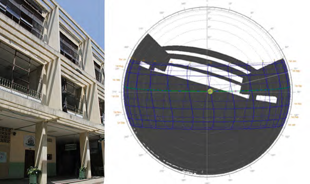 Así, la diferencia más significativa entre la gráfica elaborada "a mano" por Moya, y la gráfica elaborada mediante el uso del programa 2D Sun Path20 se encuentra en que la primera muestra un recorrido en el cual el sol, en una hora determinada del día se encuentra siempre en la misma altitud durante todos los meses del año, mientras que la gráfica solar realizada por computador representa el fenómeno del analema solar, trazando figuras en forma de "ocho tumbado" para cada una de las horas. A pesar de esta relativa imprecisión de la gráfica elaborada por Moya, la herramienta genera la confiabilidad necesaria para la elaboración de cálculos de diseño de la envolvente del edifico garantizando la protección solar de las fachadas norte y sur con un adecuado nivel de iluminación natural en los espacios de salones del colegio.