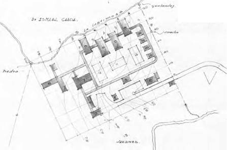La Concentración Escolar de Fusagasugá (1945) es un proyecto situado entre esta población y Girardot, y en el que un conjunto de edificaciones de un solo piso11 (cuatro pabellones de aulas, igual número de dormitorios, la Dirección y el comedor) se organizan en torno a un área deportiva de planta rectangular y sobre un predio dotado de una suave pendiente que desciende desde el nivel de acceso hacia la parte posterior, donde se ubica la enfermería (Figura 4). Si bien los planos que aún se conservan no permiten valorar la respuesta de los distintos edificios frente a las condiciones climáticas del lugar, sí se destaca el detalle de un sistema de celosías fijas, concebidas a manera de cerramiento en la parte alta del edificio destinado al comedor, las cuales debían construirse a través de un conjunto bastante simple de lamas inclinadas construidas en fibrocemento y perfiles de acero en forma de L (Figura 5).