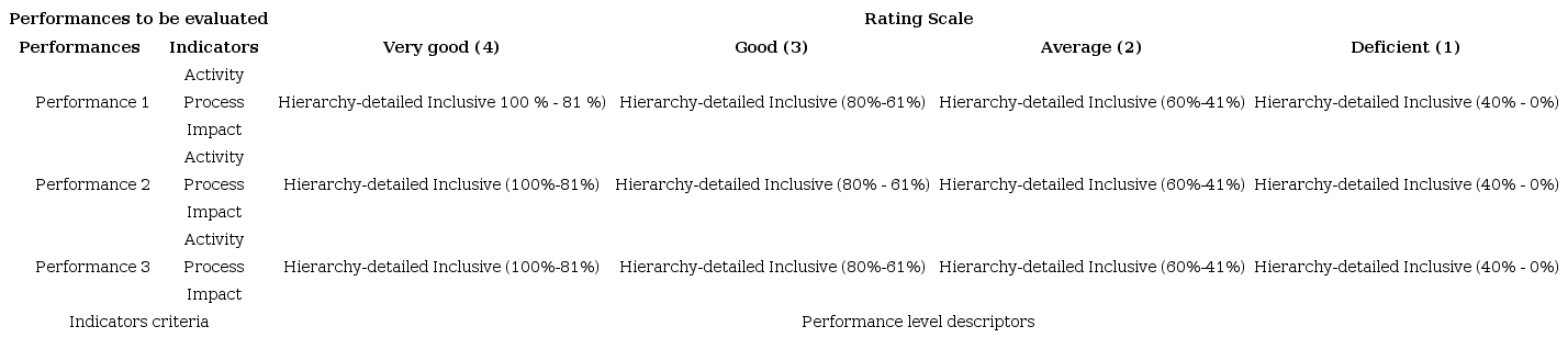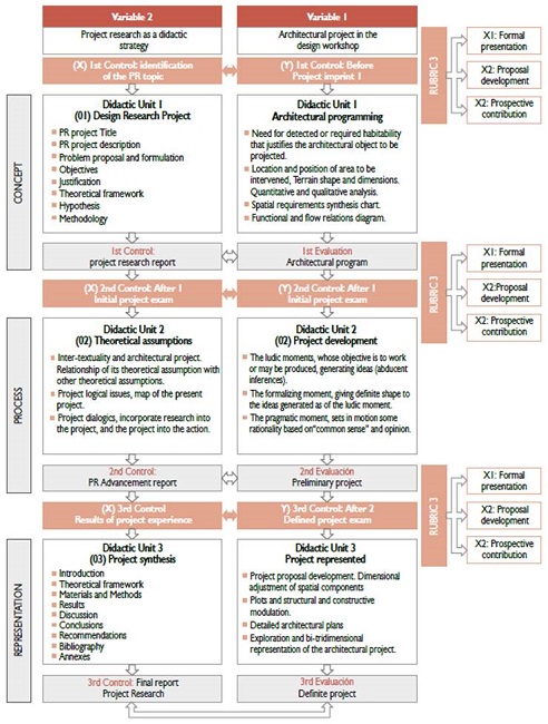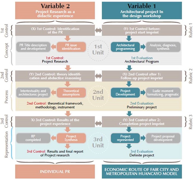 The rubric for the architecture project evaluation was supported by research-action, characterized by its being practical, and which led to the improvement of the project trial, as participative and collaborative, when applied as self-evaluation, co-evaluation, and hetero-evaluation, as well as critical; this allowed to evaluate feedback as theory, methods, and techniques applied to the teaching-learning process in the Architectural Design Workshop.