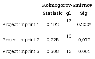 Once the normality test for verifying the specific hypotheses was performed, it was concluded that if there was one or more non-normality data, the Wilcoxon non-parametric test should be used.