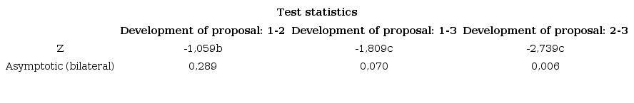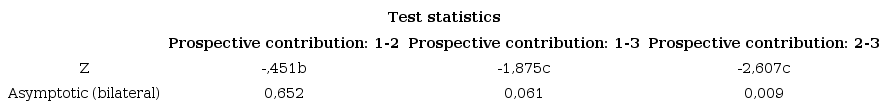 Once the preliminary results were obtained, and having established Wilcoxon's non-parametric test as the test statistic, the general hypothesis test was