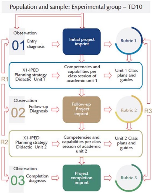 In Figure 1 can be seen the methodological structure and the experimental procedure of independent variables X1 and X2, whose reactive mode is the planning strategy and implementation in didactic units 1 and 2.
