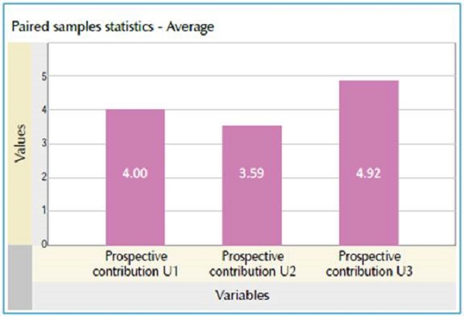 Statistical decision: From Table 6 and Figure 13 it can be deducted that the results of the prospective contribution of unit 3 is the simple with a higher average, which indicates that the application of Project Research has significantly influenced the procedures and the architectural project as developed in the Architectural Design Workshop.