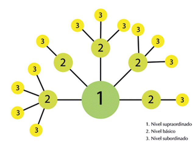 En la figura 1 es posible apreciar el modelo de clasificación de Rosch llevado a una representación gráfica. Este modelo puede ser replicado a manera de mapa ramificado, como, a su vez, lo muestra la figura 2, donde pueden establecerse relaciones de carácter conceptual entre elementos objetuales, prácticas de habitabilidad, relaciones simbólicas y usos particulares por parte de los viandantes en cada uno de los espacios del pasaje Cervantes.