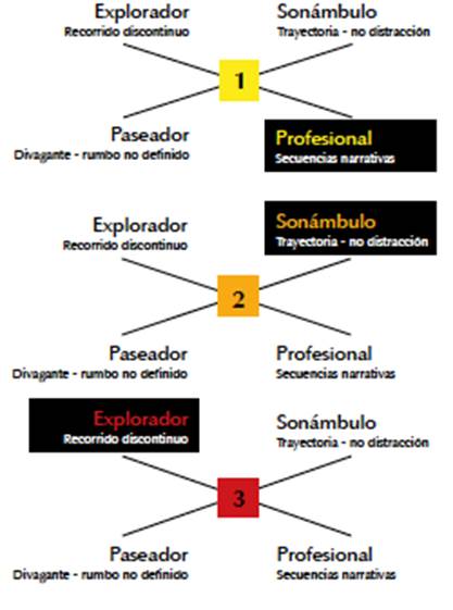 Estas instancias permiten definir los roles que los viandantes asumen en el espacio urbano, a partir de las relaciones semióticas que establecen como individuos con el espacio, ya que la intencionalidad de interacción se relaciona con la memoria individual y colectiva del espacio, lo que determina cómo un viandante se asume como transeúnte o como habitante de un lugar, y así establece una relación narrativa con el entorno. De esa manera, se comprende que en el espacio público, y desde el ejercicio de habitar y apropiar, los individuos establecen relaciones en las cuales convergen sus imaginarios simbólicos y sus experiencias. Imaginarios dentro de los cuales se configuran dichas estructuras de apropiación, de lo que les ofrecen el afuera, la ciudad y la urbanidad, como espacios de interacción con otros en los cuales se encuentran como estructura de identidad. Así, el espacio físico se establece en calidad de una idea del espacio social, como lugar antropológico variable, el cual depende de las relaciones que desde las estructuras de sentido pueden establecerse entre los sujetos que transitan, habitan y se apropian del espacio.