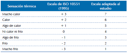 Las variables del ambiente térmico registradas simultáneamente con la aplicación de cuestionarios fueron: temperatura de bulbo seco (TBS), humedad relativa (HR) y velocidad de viento (VV), entre otras; también, la estimación de la resistencia térmica por arropamiento, la actividad metabólica y el índice de masa corporal para cada sujeto.
