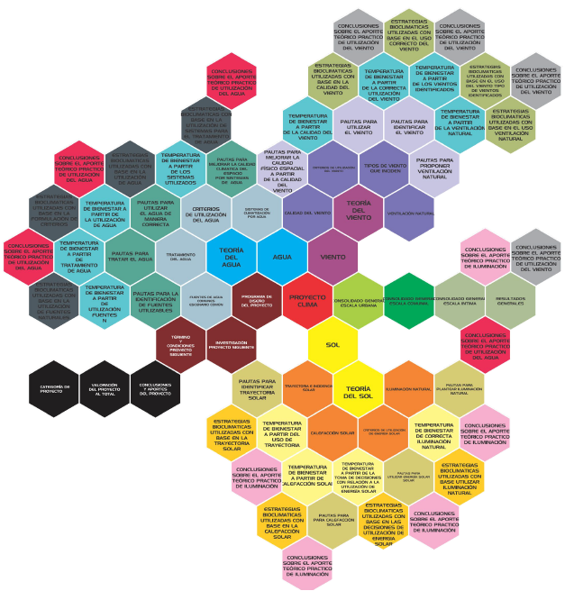 En segundo lugar, es preciso entender que la arquitectura bioclimática dentro de su contenido teórico es extensa, razón por la cual se seleccionó un subconjunto específico del contenido teórico que fundamentalmente parte de la idea de aproximar al estudiante universitario a la arquitectura bioclimática, cometido para el cual abordo principalmente el sol, el viento y el agua como temas introductorios y fundamentales para el desarrollo de la aplicación. Todo ello, con el fin de evitar abrumar al estudiante con procedimientos complejos y un volumen de temáticas que provocarían el rechazo de dicho conocimiento.