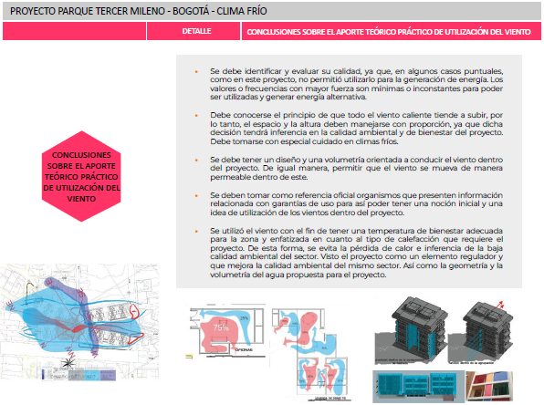 Una vez los resultados cuentan con un respaldo adecuado, se organizan y se generan consideraciones o reflexiones dentro del mismo desarrollo del ejercicio proyectual. Estas inferencias permiten al usuario organizar en orden de prioridades cuáles fueron sus conclusiones y qué aspectos tuvo en cuenta al implementar aspectos bioclimáticos dentro del proyecto. Se genera un formato que le permite organizar sus ideas y transmitir sus intenciones de manera clara sobre cómo se desarrolló el capítulo y cómo fueron utilizadas las estrategias bioclimáticas dentro del mismo, tal como se muestra en la figura 10.