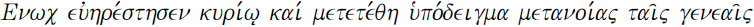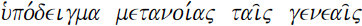 (“modelo, ejemplo”), y entendiéndolo como un concepto abstracto ético.[28] De allí que la Vg traduzca la frase como ut det gentibus poenitentiam. Pero una variante de la LXX traduce
