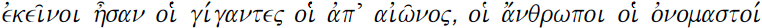 Estos fueron los héroes (lit.: los gibborim) de antiguo, hombres de nombre.