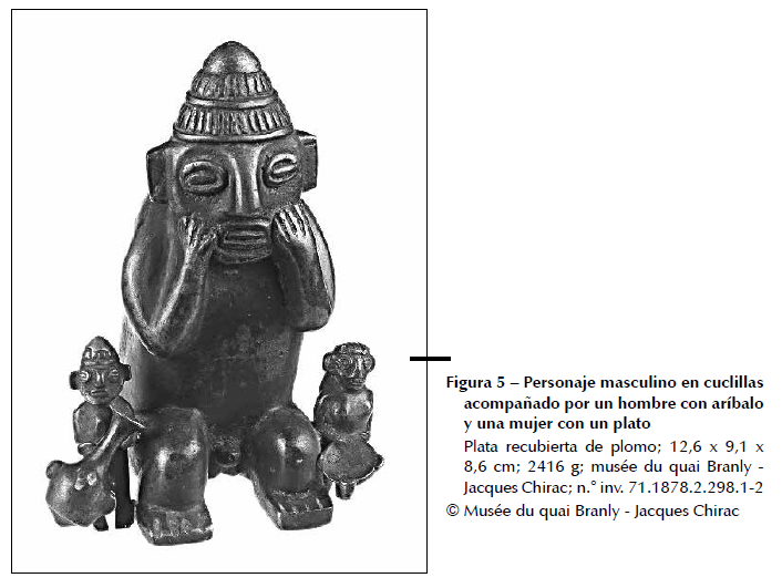 La estatuilla femenina de la colección Lemoyne (n.° inv. 71.1887.114.87), de bordes redondeados y un acabado con detalles anatómicos curvilíneos realizados por incisión, representa a otra serie de piezas conservadas en las colecciones públicas. Sus características formales la distinguen claramente de las producciones incas. La aleación de esta estatuilla no presenta zinc (cuadro 5), sino un alto porcentaje de plata.