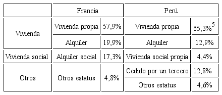 Estatus de ocupación de las residencias principales en Francia y en Perú en 2013