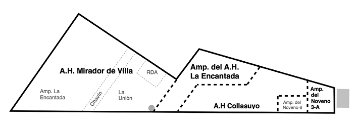 En negro los «asentamientos humanos». En gris, los sectores que son parte del A. H. Mirador de Villa