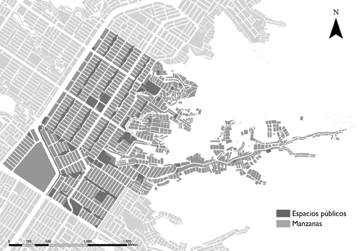 En la zona plana también existió la planificación de espacios públicos que denominaremos «espacios públicos convencionales» (fig. 1). Es decir, espacios públicos delimitados e integrados a la trama y al sistema urbano; con una distribución de usos y espacios claros (fig. 2); compuestos por mobiliario o equipamiento público, tanto al aire libre como cerrado; y cuya producción y gestión obedece a la planificación pública. Esta red de espacios se vio conformada por largas alamedas que funcionarían como espacios recreativos, corredores peatonales y áreas verdes, así como áreas reservadas para parques o equipamiento educativo. Esto se debe a que, a lo largo del siglo XX, existieron instituciones estatales que buscaron ofrecer asistencia urbanística y/o constructiva a los barrios populares10.