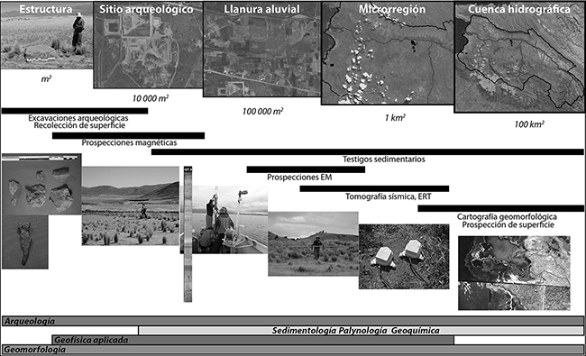 El estudio conjunto de los sitios arqueológicos y de las formaciones sedimentarias en un mismo sector de estudio permite relacionar los procesos sedimentarios con las actividades antrópicas a escala microrregional. La utilización de parámetros de estudio idénticos entre los análisis a escala de los sitios arqueológicos, así como a escala de las organizaciones geomorfológicas más grandes (laguna, llanura aluvial) nos permite mostrar los cambios de paisaje a escala regional.