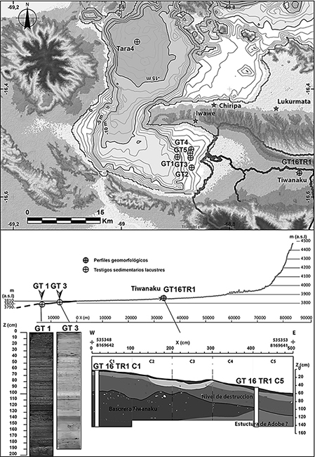 El aporte de los testigos sedimentarios lacustres extraídos frente a la desembocadura del río Guaquira-Tiwanaku ya nos permite mostrar la variabilidad de los facies sedimentarios que se pueden relacionar con cambios rápidos de paisaje. Las prospecciones sísmicas realizadas en el valle bajo y la llanura aluvial del río Guaquira-Tiwanaku permitirán además delimitar los espacios relacionados con los datos puntuales producidos a partir de las extracciones de testigos y cortes sedimentarios.
