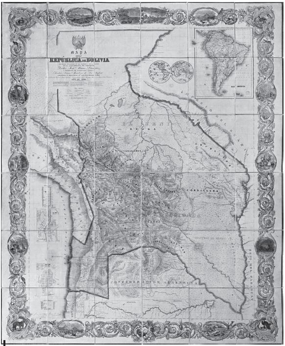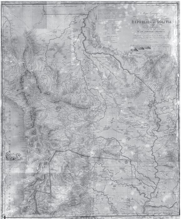 Mapa Corográfico de la República de Bolivia, mandado a levantar por el presidente José Ballivián y formado por el coronel de ingenieros Felipe Bertrés (dimensiones 126 x 105 cm)