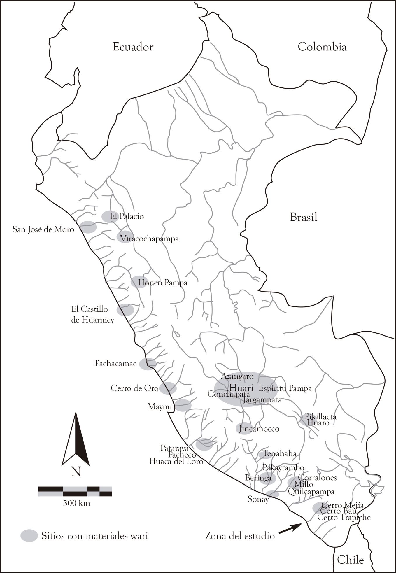 El estado wari se expandió para subyugar a las personas de diferentes regiones a lo largo de los Andes centrales alrededor del 600 d. C. (fig. 1). Los agentes del estado habrían estado familiarizados con varios de estos grupos, o por lo menos con su élite, a través de relaciones comerciales, experiencias conjuntas de peregrinaciones, escaramuzas u otros tipos de interacción. Los restos materiales dan testimonio de la rica diversidad cultural antes y durante todo el Horizonte medio. Esta diversidad desafía la capacidad de los arqueólogos para reconocer si Wari controló una región, a su gente y cuándo. En todo imperio, los funcionarios se esfuerzan por idear instituciones que explotan conceptos ampliamente compartidos para legitimar su control sobre determinados grupos. Esto no elimina la diversidad cultural. Los estados y los imperios no controlan todos los aspectos de la vida diaria, ni necesitan hacerlo. La mayoría de los imperios no pueden usar solo una estrategia para controlar a todas las provincias. La falta de un único enfoque imperial y de solo un conjunto de marcadores materiales ha llevado a algunos estudiosos de los Andes a dar explicaciones alternativas al fenómeno wari; sin embargo, estos otros escenarios no están respaldados por evidencia arqueológica, sino caracterizados por una discontinuidad entre expectativas y observaciones.
