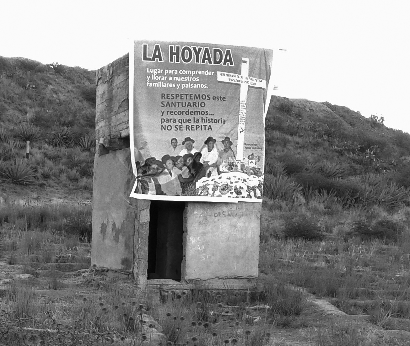 © Eva Willems, 2014En Perú, la población rural demanda principalmente mejores condiciones de vida más que reparaciones pecuniarias individuales o una suerte de justicia vengativa, debido a la precariedad y pauperización de sus condiciones. De esa manera, «[e]l sentido de la justicia cambia cuando ubicamos esta noción en la relación que se teje entre Hualla y el Estado. Si bien la población no pide que se castigue a quienes cometieron las agresiones, esperan que la justicia llegue a su localidad a través de propuestas que les permita superar la situación de pobreza y la recuperación de los cuerpos de los desaparecidos» (Equipo Peruano de Antropología Forense, en adelante EPAF, 2012: 38). La demanda de mejores condiciones de vida es significativa si se considera, por ejemplo, la brutalidad de los crímenes y testimonios que representa el Santuario de la Hoyada (ver figura 2), donde anteriormente funcionaba el Cuartel BIM N˚ 51 del Ejército del Perú, conocido como «Los Cabitos». Este fue el principal centro de detenciones arbitrarias, desapariciones y ejecuciones extrajudiciales de hombres y mujeres e incluso niños y niñas. Las exhumaciones permitieron identificar fosas individuales y colectivas que contenían restos de más de 109 personas. Además, se encontró un «horno», un tanque de combustible y otros elementos para el almacenamiento, transporte y alimentación de combustible que servían para incinerar a los detenidos.