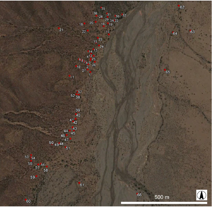 Esta primera presentación de las evidencias de superficie nos permitió bosquejar un panorama inicial que muestra el gran potencial para el desarrollo de investigaciones arqueológicas a futuro en un área prácticamente desconocida en el sur de Yocavil. Entre los trabajos en curso se cuenta la elaboración de un herbario de referencia[48] y el análisis estilístico detallado de los fragmentos cerámicos recuperados. Esta última tarea nos permitirá jalonar los grandes bloques cronológicos con los que hemos trabajado en el presente artículo con categorías más precisas y acotadas en términos de la periodificación arqueológica regional. Nuestros próximos pasos en el campo se orientarán a la excavación de unidades seleccionadas en área extendida para comenzar a reconocer el registro subsuperficial.