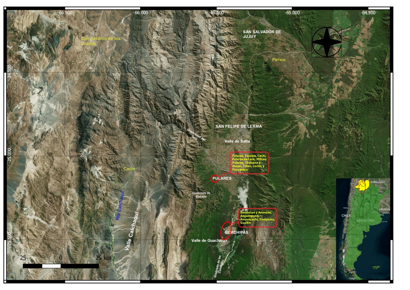 Lorandi y Boixadós en su trabajo pionero sobre la etnohistoria de los valles calchaquíes plantearon como objetivo lograr tanto la definición de las unidades sociales, políticas y culturales como la distribución espacial de los grupos que estaban asentados en el valle Calchaquí a partir de un análisis exhaustivo de fuentes de los siglos XVI y XVII, reflexionando acerca de las categorías usadas en los documentos y entrecruzando la información etnohistórica con los aportes de la arqueología sobre la región, convirtiéndose en un estudio de ineludible lectura tanto por sus aportes como por las sugerentes hipótesis planteadas. Las autoras proponen una segmentación étnico-política del área calchaquí que tendría su correlato en la distribución espacial de los grupos en tres sectores: al norte el valle de los Pulares, el área central del valle Calchaquí y al sur el valle Yocavil. El valle de los pulares se extendía entre la actual localidad de La Poma y el pueblo de Atapsi (cercano al actual Seclantás), recorrido por el río Calchaquí y bordeado por las sierras subandinas al este y las estribaciones de la puna al occidente[15].