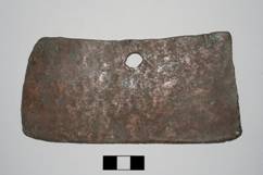 Ciertos objetos de metal merecen una observación especial. A los punzones de metal de 30 cm promedio de largo Ambrosetti le atribuye la función de armas en vez de útiles de trabajo, mientras que a las cuchillos semilunares y tumis les otorga una función “más para adornos pectorales que para cortar”[88], prefiriéndose el vidrio volcánico para estos fines. Sin embargo, no por ello lo asocia abiertamente como pertenecientes al mundo masculino en su descripción.