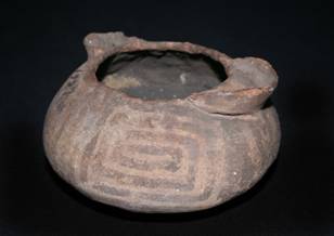 Se trata de pequeños jarros cerámicos sin decoración y que fueran entendidos por Ambrosetti como “verdadero útil de cocina y por consiguiente propio del ajuar fúnebre de mujer”[62]. Su nombre se debe a tener las líneas de construcción asimétricas: la pared opuesta a la del asa es muy convexa y saliente y su finalidad estaba orientada a un fin utilitario, al poder acercarse y retirarse del fuego sin que el asa se caliente[63].