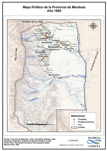 Finalmente, la última etapa marcada para el asociacionismo local, se inició a principios de la década de 1880 y se extendió hasta finales de la centuria. Durante ese período se asistió a una progresiva transformación del fenómeno asociativo local reflejada en la puesta en marcha de asociaciones impulsadas por los inmigrantes europeos y la diversificación de objetivos de las nuevas asociaciones locales. Esta fase, a diferencia de la anterior, coincidió con un período de transformación socio-económico provincial motivado por el desarrollo de la industria vitivinícola local –alentada y protegida desde el Estado Provincial– y el precipitado aumento poblacional. Dicho aumento demográfico no obedeció exclusivamente al crecimiento natural de la población provincial sino a los aportes migratorios recibido ya no sólo de Chile sino también de Europa, dando como resultado la instalación de comunidades extranjeras –sobre todo italiana, española y francesa– en el territorio[49].
