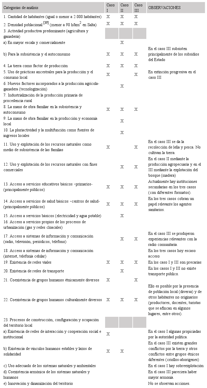 En un principio se supuso que estas categorías serían excluyentes para diferenciar lo rural de lo urbano pero en el proceso de análisis se advirtió que pueden formar parte de un marco referencial que, con ciertas especificaciones conceptuales y mediciones estadísticas más finas y detalladas (tales como la construcción de índices y los estudios de conglomerados –cluster analysis- que favorezcan la elaboración de tipologías), se podrían utilizar para establecer niveles y grados de imbricación de lo rural en lo urbano y de lo urbano en lo rural.