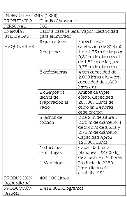 Consideramos que la caracterización y análisis del ingenio Lastenia en el marco de un contexto general nos permitirá acercarnos a lo sucedido en otras unidades productivas, aportándonos un panorama general de lo acontecido a nivel tecnológico, productivo, económico y social; todos ellos aspectos íntimamente relacionados y que dan cuenta del advenimiento de una Revolución Tecnológica en la provincia luego de la llegada del ferrocarril.