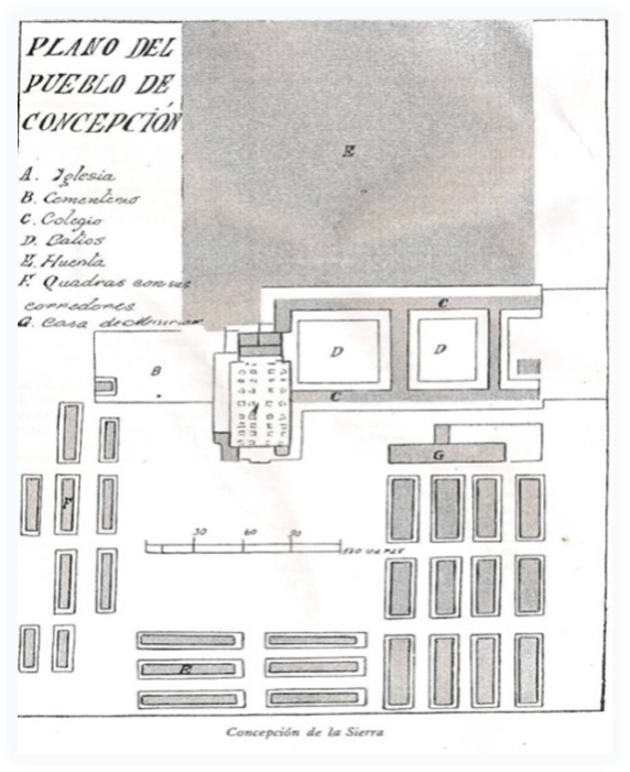 Esta investigación llevó a codificar la continuidad vital de la materialidad arqueológica, a partir de los espacios reconstruidos y físicamente observables, que, de alguna manera, condicionaron la línea histórica de los pueblos misioneros con un pasado jesuítico, como ocurre en Concepción[84].