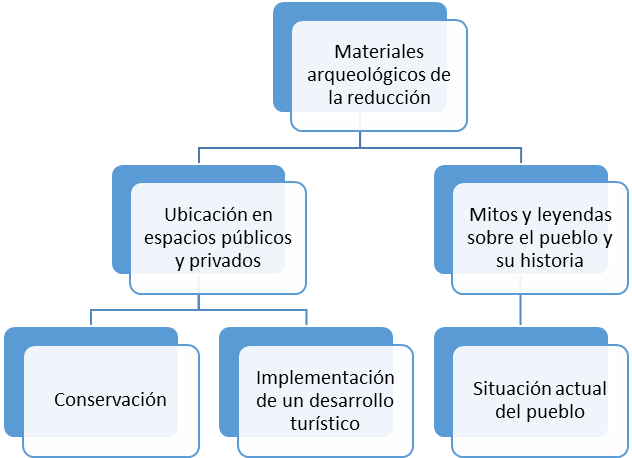 A partir de contemplar el área de investigación, los restos pertenecientes a las reducciones manifiestan como las personas se estructuran en una trama de relaciones sociales, insertos en una perspectiva espacial y temporal determinada históricamente, y, a la vez, moviéndose en el espacio y tiempo[22].