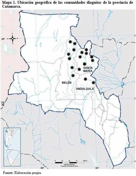Ubicación geográfica de las comunidades diaguitas de la provincia de Catamarca