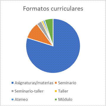 Por otra parte, y retomando los lineamientos nacionales presentados en el apartado anterior, es necesario revisar en qué campo de la formación se incluye cada unidad curricular (como se mencionó anteriormente, la normativa nacional las ubica en el campo de la formación general) así como el formato curricular que se les asigna. En relación con esto último, como ya se señaló, a nivel nacional se sugiere el formato de “asignatura”, que acentúa el enfoque centrado en la disciplina y su estructura.