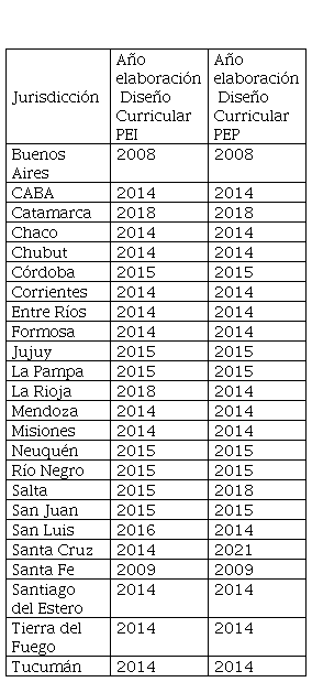 Es a partir de este proceso iniciado nacionalmente que surgen las distintas propuestas formativas que se presentan en el apartado que sigue. Algunas de ellas ya han concretado distintas modificaciones en el transcurso de los años 2008-2021. En la figura 1 se señalan los años de elaboración de las propuestas jurisdiccionales vigentes en 2022.